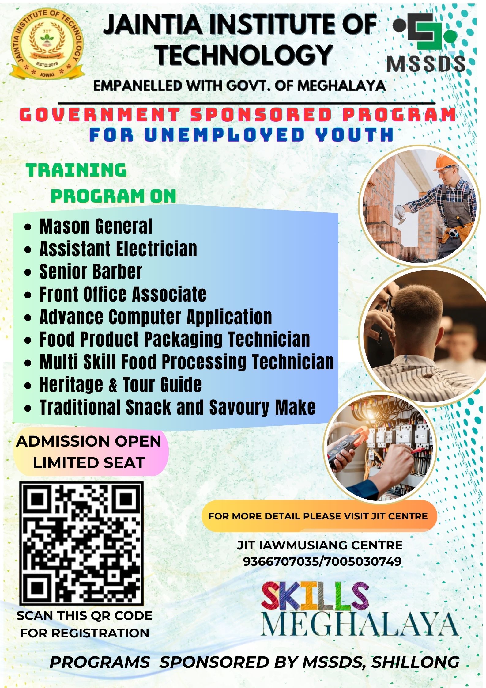 Skills training programs for Unemployed youths sponsored by Meghalaya State Skills Development Society,Shillong-Session 2025-26